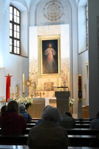 W piątym dniu, w Uroczystość Najświętszej Marii Panny Królowej Polski, pielgrzymi podziwiali Wilno z Góry Giedymina i kosztowali tutejszych specjałów. Spacerując urokliwymi uliczkami dotarli do Sanktuarium Miłosierdzia Bożego, w którym znajduje pierwszy obraz Jezusa Miłosiernego, namalowany przez Eugeniusza Kazimierowskiego według wskazań świętej siostry Faustyny Kowalskiej. Kulminacyjnym, długo oczekiwanym momentem całej pielgrzymki, a zarazem niesamowitym przeżyciem duchowym była Msza św. w intencji naszej Ojczyzny, sprawowana przez ks. Krzysztofa bezpośrednio przed obrazem Matki Bożej Miłosierdzia w Kaplicy Ostrobramskiej.