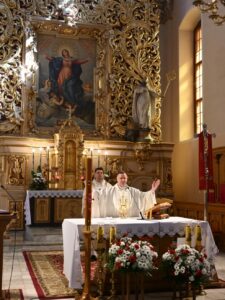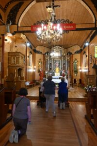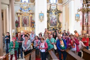 Miesiąc Maryjny pielgrzymi zaczęli o poranku w Sanktuarium Matki Bożej Studzieniczańskiej, Matki Kościoła w Studzienicznej z modlitwą w Kaplicy na Wyspie. Następnie udali się do Pokamedulskiego Klasztoru w Wigrach. Po zwiedzaniu i Mszy św. była chwila na kawę i ciasto wigierskie. Opuszczając Wigry pielgrzymi po niecałej godzinie podróży przekroczyli granicę polsko-litewską.