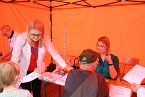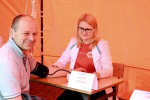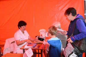 Stoisko medyczne - mierzenie ciśnienia i poziomu cukru, pomiar tkanki tłuszczowej, porady jak dbać o swój kręgosłup, badanie słuchu - nasz zespół uwijał się od samego rana, chętnych do badań nie brakowało.