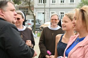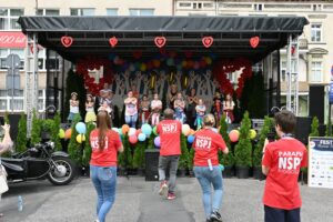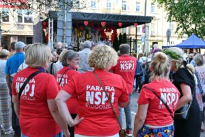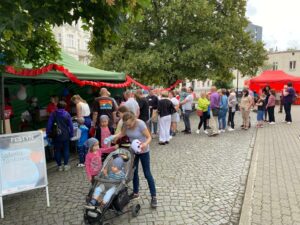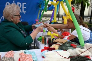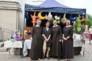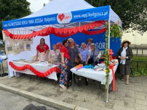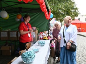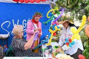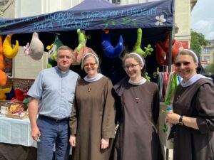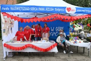 Na placu rozgościły się również stoiska parafialne, z których skorzystali i mali i duzi - namiot parafialny z torbami, kubkami, magnesikami, klub seniora z balonami i wiankami, warkoczyki i przypinki - różnorodność, a za tym wszystkim uśmiechnięta załoga NSPJ.