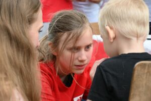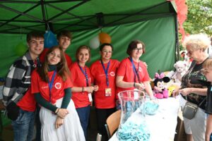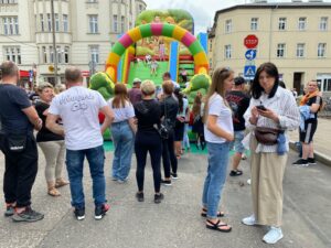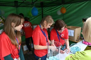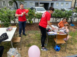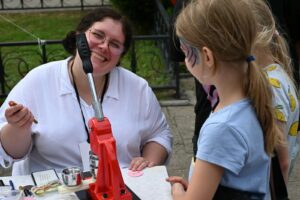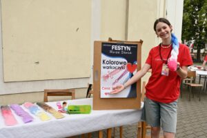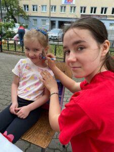 Równolegle dzieci mogły wziąć udział w wielu grach i zabawach, gdzie nasi wolontariusze byli wspierani przez uczniów ze szkolnego koło Caritas SP2, którzy m.in. malowali dzieciom twarze.