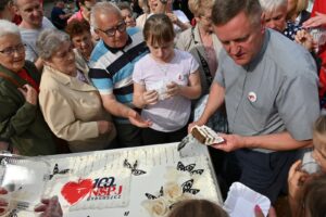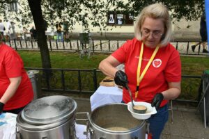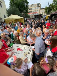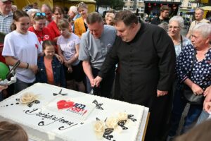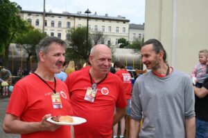 a jeszcze bardziej żołądki gości. Zupki gotowane od rana, świeżutki żurek i grochowa oraz bardzo chwalony smaluszek z chlebkiem od piekarni Murmiło i Państwa Poćwiardowskich. Na deser zaś był ogromny tort - prezent od ks. Sławka Bara i Bydgoskiej Bazyliki.