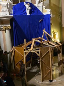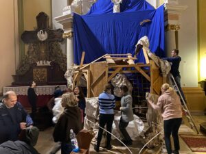 W naszej świątyni ruszyła budowa szopki bożonarodzeniowej w nowej odsłonie. Postępy prac parafialnej grupy technicznej na zdjęciach poniżej.
