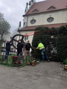 Grupa techniczna dokonała demontażu krzyża misyjnego w celu jego renowacji. Z niecierpliwością czekamy na efekt tych prac, aby móc upamiętnić kolejne misje parafialne, które będą miały miejsce w naszej parafii od 2 czerwca.