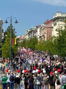 Przedostatniego dnia pielgrzymi ruszyli na podbój Wilna z przewodnikiem – przesympatyczną panią Reginą. Najpierw pomodlili się za zmarłych na cmentarzu na Rosie i odśpiewali Hymn przed grobem matki marszałka Piłsudskiego, w którym pochowane jest również serce Naczelnika Polski. Następnie podziwiali kunsztownie odrestaurowany kościół pw. Apostołów Piotra i Pawła. Dalej pielgrzymia droga zaprowadziła ich do domu św. siostry Faustyny, w którym przeżyła kilka lat, doznając ok. dziewięćdziesięciu objawień Pana Jezusa. W tym domu Pan Jezus podyktował sekretarce Bożego Miłosierdzia Koronkę, którą również pielgrzymi odmówili wspólnie. Kolejnym etapem było zwiedzanie Starego Wilna. Grupa miała niepowtarzalną okazję podziwiana malowniczej parady Polaków mieszkających na Litwie z okazji świętowania Dnia Polonii i Polaków za Granicą. Kulminacyjnym momentem, była Eucharystia sprawowana przez Księdza Krzysztofa w Sanktuarium Bożego Miłosierdzia.