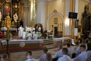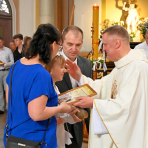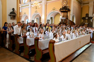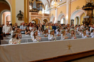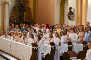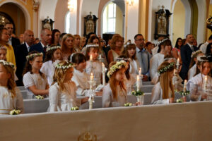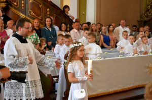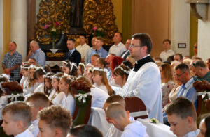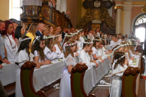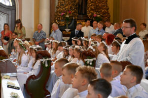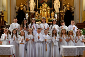 W sobotę 25 maja 2024, podczas Mszy św. o godz.11.00 grupa dzieci z naszej parafii przystąpiła do Pierwszej Komunii Świętej. Była to podniosła chwila, w której towarzyszyli im przede wszystkim rodzice, rodzice chrzestni, rodzeństwo i dziadkowie. Ksiądz Krzysztof podkreślał jak ważne jest w pełni uczestniczenie w Eucharystii, przyjmowanie Chrystusa do swojego serca. Na koniec dzieci wręczyły róże swoim mamom z okazji zbliżającego się Dnia Matki.