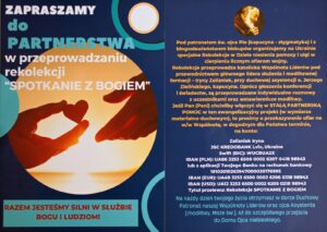 Pokrótce przedstawił także na czym polega jego działalność misyjna w dziele niesienia pomocy i ulgi w cierpieniu licznym ofiarom wojny. Odpowiada on za duchową asystencję Katolickiej Wspólnoty Liderów pod przewodnictwem Iryny Zalizniak. Ojciec Jerzy przytoczył owoce rekolekcji, które przeprowadza - świadectwa nawrócenia konkretnych osób. Na zakończenie zaprosił do partnerstwa w przeprowadzaniu rekolekcji i włączenia się w ten ewangelizacyjny projekt.
