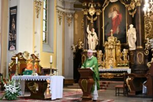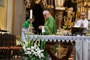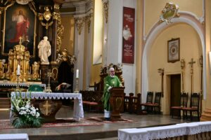 W niedzielę 11 sierpnia gościliśmy w naszej parafii o. Marka Rostowskiego, Misjonarza Oblata Maryi Niepokalanej. Ojciec głosił homilie podczas wszystkich Mszy św. Mówił, że współczesny świat odrzuca wartości chrześcijańskie. Odrzuca zasady ewangelii, a ewangelia jest ciągle aktualna. Jesteśmy misjonarzami, aby głosić ewangelię wszędzie, w domu, w pracy, w parafii. Modlić się w intencji misji może każdy, Wystarczy poświęcić minutę w ciągu dnia na choćby jedno "Zdrowaś Maryjo..." w intencji misji. Jesteśmy współodpowiedzialni za to dzieło ewangelizacji. Jesteśmy odpowiedzialni za tych którzy są na pierwszej linii ewangelizacji, dlatego musimy prosić Boga o nowe powołania kapłańskie. Musimy prosić Boga o odwagę dla młodych ludzi, aby nie bali się odpowiedzieć Bogu TAK. Kapłani rodzą się w rodzinach, rodzina jest bardzo ważna. Modlitwa potrafi czynić cuda.