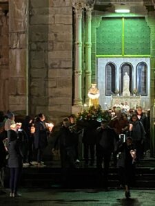 Czwartego dnia pielgrzymki pątnicy spacerowali uliczkami Carcassonne podziwiając zabytkową, średniowieczną architekturę tego miasta. Następnie przez Alpy dojechali do La Salette na spotkanie z Płaczącą Panią. Po pysznej kolacji mieli Mszę św. w kaplicy, a później udali się do kościoła na Procesję Światła.