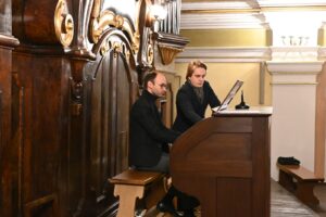 W piątkowy wieczór podczas ostatniego tegorocznego koncertu muzyki organowej i kameralnej usłyszeliśmy kompozycje inspirowane chorałem gregoriańskim wykonane na organach przez Szymona Olszańskiego. Śpiewy gregoriańskie wykonała Schola VOX CORDIS pod dyr. Michała Kołodzieja, działająca przy naszej parafii.