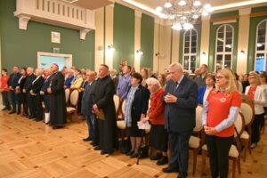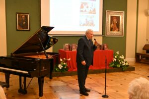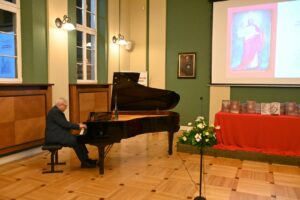 Muzycznie wieczór uświetnił swym pięknym występem parafianin Karol Marcinkowski wykonując odpowiednio na początek i zakończenie balladę g-moll Fryderyka Chopina oraz menuet g-dur - Ignacego Jana Paderewskiego. Spotkanie prowadziła Mariola Ciesielska. Na zakończenie ksiądz Krzysztof podzielił się swoją refleksją i zachęcił do tego, aby czytając publikację wpatrywać się w twarze osób, które znalazły się na zdjęciach. Sto lat - iluż to było ludzi! W modlitwie na zakończenie nie mogło zabraknąć wspomnienia tych, którzy odeszli. "Przemija nam czas. Oby następni mieli coś po nas. Oby mieli na czym budować." - powiedział ksiądz Krzysztof.