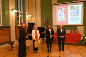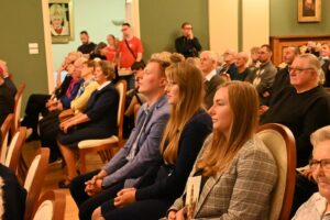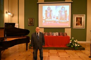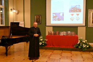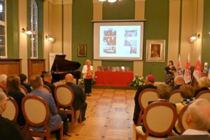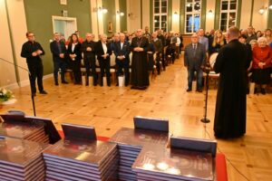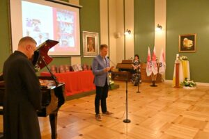 Następnie zebranym kolejno zaprezentowali się twórcy pięknie wydanej książki. Na początek dr historii Marek Romaniuk, który nakreślił rys historyczny powstania parafii.