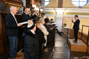 17 listopada 2024 na uroczystej Mszy św. z okazji zbliżającego się wspomnienia św Katarzyny Aleksandryjskiej patronki kolejarzy zgromadzili się bydgoscy kolejarze aby dziękować Panu Bogu za opiekę i prosić przez wstawiennictwo św. Katarzyny Aleksandryjskiej o potrzebne siły i opiekę na następny rok dla siebie i swoich rodzin. We Mszy św. koncelebrowanej przez ks. Eugeniusza Zarębińskiego krajowego duszpasterza kolejarzy, ks. Krzysztofa Buchholza diecezjalnego duszpasterza kolejarzy i ks. Marcina Szustera katechetę i wicedyrektora Technikum Kolejowego uczestniczyli przedstawiciele dyrekcji zakładów kolejowych z terenu Bydgoszczy, pracownicy kolejowi i ich rodziny, emeryci kolejowi, młodzież, sympatycy kolejnictwa oraz poczty sztandarowe spółek, związków zawodowych oraz bydgoskiego koła Katolickiego Stowarzyszenia Kolejarzy Polskich. Wszystkich przybyłych przywitała Hanna Januszewska Prezes koła KSKP w Bydgoszczy. W homilii ks. Eugeniusz wspomniał o patronach KSKP które w tym roku obchodzi 30 rocznicę powstania błogosławionych Rafale Kalinowskim karmelicie bosym, inżynierze pracującym przy budowie linii kolejowych, sybiraku i ks. Franciszku Rogaczewskim kapelanie kolejarzy z Gdańska zamordowanym przez Niemców w 1940 roku w obozie w Stutthofie, a także o obecnie trudnych czasach dla polskiej kolei, szczególnie o próbach jej zniszczenia. Na zakończenie Mszy św. honorowe dyplomy otrzymali małżonkowie z koła KSKP obchodzący w tym roku 60, 55 i 50-lecie sakramentu małżeństwa. Były również podziękowania od Pani Prezes dla wszystkich którzy w jakikolwiek sposób wnieśli swój wkład do zorganizowania tegorocznych obchodów Dnia Kolejarza. Po Mszy św. orkiestra, poczty sztandarowe i wszyscy uczestniczący udali się na ulicę Dworcową 63 pod pomnik zamordowanych w czasie II wojny światowej kolejarzy, gdzie zostały złożone wieńce, wiązanki kwiatów i znicze. Następnie pochód udał się do auli Technikum Kolejowego gdzie odbyła się krótka akademia z okazji 10-lecia reaktywowania szkoły. W krótkim rysie historycznym przedstawiciel samorządu uczniowskiego przypomniał o tradycjach szkolenia kolejarzy w Technikum Kolejowym tym rozwiązanym i obecnym. W roku 2013 postanowiono reaktywować szkołę i od września 2014 roku rozpoczęto naukę na 4 kierunkach zawodowych. W latach 1952 do 2005 kiedy to zlikwidowano szkołę jej mury opuściło przeszło 7 tysięcy absolwentów na 28 kierunkach, a w reaktywowanej szkole prawie 1000 absolwentów na 4 kierunkach. W krótkiej części artystycznej wystąpili uczniowie szkoły. Po zakończeniu wszyscy uczestnicy zostali zaproszeni do pomieszczeń przy ul. Unii Lubelskiej, gdzie czekał przygotowany poczęstunek. Z okazji jubileuszy KSKP i Technikum Kolejowego były okolicznościowe torty. Tam część artystyczną przygotowali uczniowie Zespołu Szkół Mechanicznych numer 1 w Bydgoszczy w którym również są klasy o profilu kolejowym. Jak to zwykle bywa przy wielopokoleniowych spotkaniach były rozmowy i wspomnienia uczestników o pracy na kolei tej dawniej i obecnej. Należy wyrazić wdzięczność i uznanie młodzieży, która coraz aktywniej bierze udział w obchodach Dnia Kolejarza w naszej parafii.
