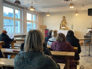 W niedzielę, 8 grudnia, w Uroczystość Niepokalanego Poczęcia Najświętszej Maryi Panny, w samo południe parafianie przybyli do kaplicy domu parafialnego, aby przed Najświętszym Sakramentem adorować przez pełną godzinę Maryję. Wraz z księdzem Krzysztofem odśpiewali Anioł Pański, a następnie godzinki ku czci Niepokalanego Poczęcia NMP oraz odmówili różaniec.