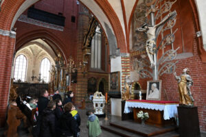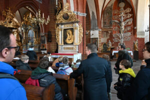 Okazją do tego było zwiedzanie kościołów: Katedry pw. św. Jana Chrzciciela i Jana Ewangelisty oraz kościoła pw. św. Jakuba. Przekonaliśmy się w nich o trwałości średniowiecznych budowli, a także mięliśmy okazję podziwiać piękno zdobień i kolorów charakterystycznych dla gotyku. Przypominając sobie, że przeżywamy Wielki Post zatrzymaliśmy się przy krucyfiksie z około 1350 r. Oglądanie Drzewa Życia, na którym zawisło Zbawienie Świata niewątpliwie poruszyło niektóre serca.