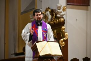 „Tu jest prawdziwy Bóg, który nam się podarowuje” – dodał kapłan archidiecezji krakowskiej, który od 16 do 19 marca głosił w bydgoskiej parafii Najświętszego Serca Pana Jezusa rekolekcje – również dla środowisk akademickich, nauczycielskich, medycznych, inżynierskich.