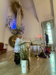 Po wystąpieniu Msza św. którą sprawował ks. Krzysztof. W kazaniu nawiązał do dzisiejszej Ewangelii mówiącej o tym jak po słowach najwyższego kapłana Kajfasza że lepiej gdyby umarł jeden człowiek niżby miał zginąć cały naród, żydzi definitywnie postanowili zgładzić Jezusa.