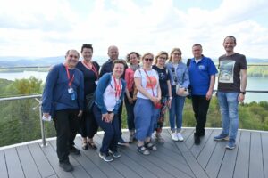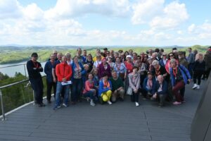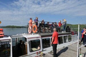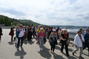 Po urokliwym rejsie po Zalewie Solińskim pielgrzymi wspięli się na nowoczesną wieżę widokową, skąd podziwiali piękną panoramę Bieszczadów.