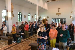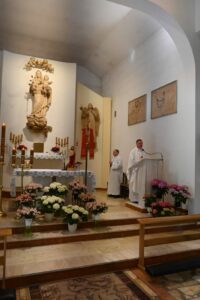 Uradowani urokiem solińskiej przyrody udali się w kierunku Ustrzyków Dolnych, do miejscowości Równia zobaczyć kolejną z wielu tu obecnych, dawną cerkiew Opieki Matki Bożej - obecnie kościół pw. Matki Bożej Wspomożenia Wiernych. Następnie dotarli do Caritas Diecezji Rzeszowskiej, gdzie uczestniczyli w Mszy św., po której zwiedzili Ogród Biblijny i Park Miniatur kościołów. Na zakończenie udali się zobaczyć znacznie mniejszą