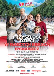 XIII Bydgoski Marsz dla Życia i Rodziny pod hasłem „Przyszłość dzieci w naszych rękach” odbędzie się 25 maja – początek na Starym Rynku o 13.30 z za kończenie przy Bazylice pw. św. Wincentego à PAulo.