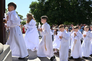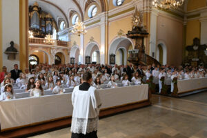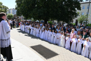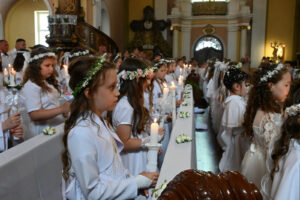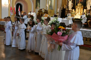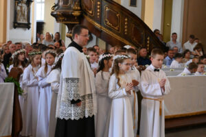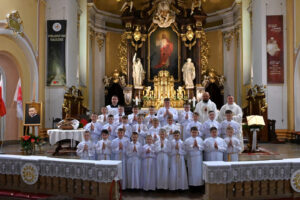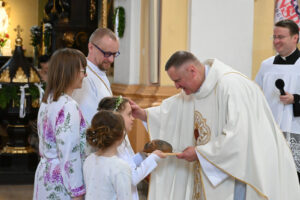 W sobotę 14 czerwca 2025, podczas Mszy św. o godz.11.00 grupa dzieci z naszej parafii przystąpiła do Pierwszej Komunii Świętej. Była to podniosła chwila, w której towarzyszyli im przede wszystkim rodzice, rodzice chrzestni, rodzeństwo i dziadkowie.