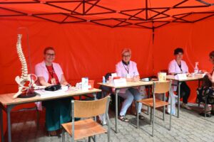 Po sąsiedzku z loterią, na stoisku medycznym specjaliści robili pomiary ciśnienia tętniczego i cukru we krwi. Udzielali też porad dotyczących profilaktyki chorób kręgosłupa oraz wykonywali badania uszu.Na festynie nie mogło zabraknąć parafialnych stoisk - miedzy innymi z upominkami, gdzie można było kupić: kawę, herbatę, torby, świeczki, mydła, magnesy, serduszka, kubeczki. Na stoisku kulinarnym natomiast uśmiechnięte parafianki częstowały pysznymi zupami, lemoniadą oraz ciastem. Nie zabrakło też Duszpasterstwa Młodzieży Młyn i zaprzyjaźnionego Technikum Kolejowego.