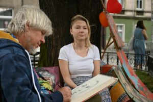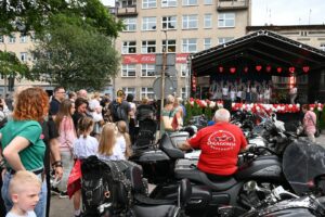 W czerwone koszulki organizatorów wpasowali się harleyowcy, którzy zaprezentowali swoje maszyny przed sceną. Do oglądania były nie tylko harleye, ale również samochody. Natomiast jeśli komuś zamarzył się portret, to swój talent objawiał Pan Waldemar Zysk.