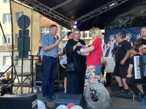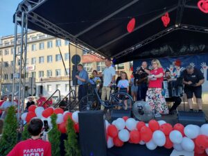 Na scenie odbyła się licytacja obrazu Najświętszego Pana Jezusa, gąsiora z dachu kościoła i wina oraz losowanie nagród głównych w loterii fantowej - hulajnogi(prywatny sponsor), airfryer(Polregio), roweru(Domitech) oraz Pielgrzymki do Portugalii(Frater).
