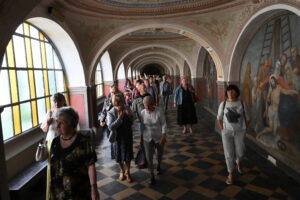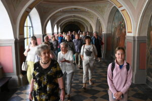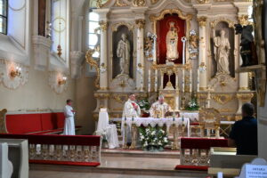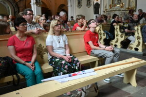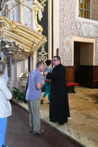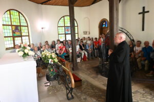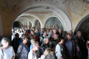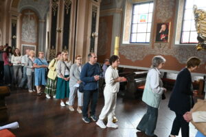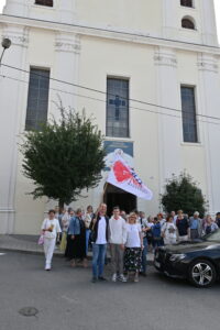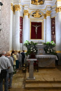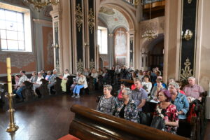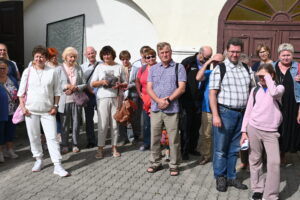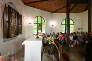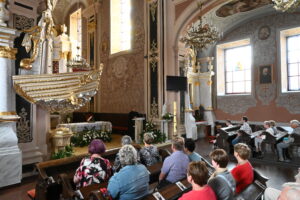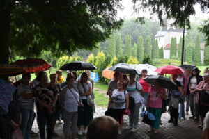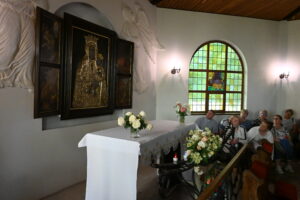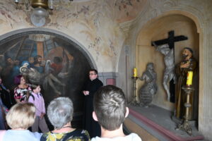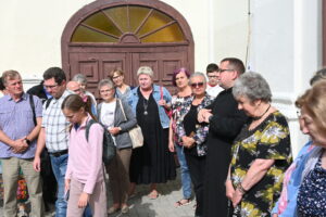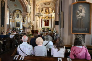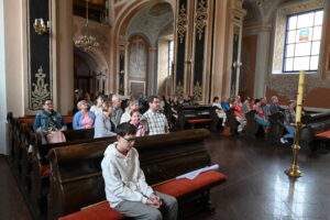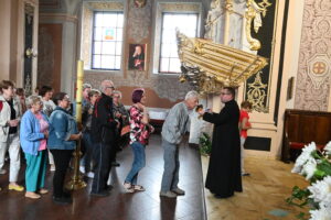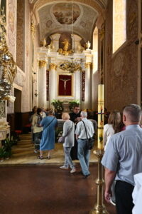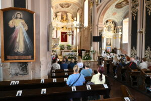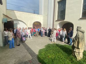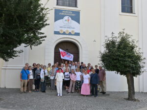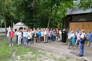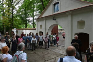 19 lipca 2025 miała miejsce kolejna, tym razem, autokarowa pielgrzymka do dwóch Kościołów Jubileuszowych Sanktuarium Krzyża Świętego w Kcyni i Sanktuarium Matki Bożej Góreckiej Królowej Krajny w Górce. W Sanktuarium w Kcyni pielgrzymów przywitał ks. Stanisław i zapoznał pielgrzymów z historią powstania klasztoru po karmelitańskiego, a także oprowadził powstałej przy klasztorze kalwarii i zabudowaniach przyklasztornych. W wielkim ołtarzu kościoła Wniebowzięcia Najświętszej Maryi Panny bo takim wezwaniem został wzniesiony w XVI wieku kościół znajduje się stara figura Pana Jezusa Ukrzyżowanego. Słynie ona licznymi cudami, a na głowie Ukrzyżowanego Jezusa są włosy panny Wilczyńskiei z Żurawi która cudownie została uleczona z migreny. Pielgrzymi mieli możliwość ucałowania relikwii Krzyża Świętego i przed Krzyżem przedstawienia swoich intencji. Według słów ks. Stanisława z Kcyni wywodzi się również najstarszy nutowy zapis Bogurodzicy. Po pobycie w Kcyni pielgrzymi udali się do Górki Klasztornej, najstarszego Sanktuarium Matki Bożej w Polsce aby uczestniczyć we Mszy św. sprawowanej przez ojca Piotra ze Zgromadzenia Misjonarzy Świętej Rodziny i ks. Krzysztofa. Po Mszy św. obiad, a po nim ojciec Piotr przedstawił historię miejsca oraz oprowadził po terenie przyklasztornym. Z racji umiejscowienia na krańcach dawnej Rzeczypospolitej były burzliwe okresy w jej dziejach. Początek datuje się na rok 1079 gdzie w dwa miesiące po zamordowaniu przez siepaczy króla Bolesława Śmiałego biskupa Stanisława na drugim krańcu królestwa w Gaju Góreckim pasterzowi na ogromnym dębie ukazała się Matka Boża z Dzieciątkiem na ręku. W XVI wieku Górka i okolice znalazły się w rękach protestantów i właścicielka miejsca nakazała spalić drewniany kościółek a jej syn kazał zasypać cudowne źródło. Po stanowczej interwencji kasztelana inowrocławskiego protestanci ustąpili, a kasztelan Kościelecki przyjeżdżał w to miejsce gdzie na zgliszczach rozstawiano namiot wieszano obraz i odprawiano nabożeństwa; W XVII wieku zbudowano nowy kościół. Potem miejscem tym opiekowali się bernardyni, a w czasach rozbiorów księża diecezjalni z Łobżenicy. W 1923 roku kardynał Dalbor przekazał klasztor Zgromadzeniu Misjonarzy Świętej Rodziny, którzy tym miejscem opiekują się do dzisiaj. W czasach hitlerowskich Górka stała się obozem dla misjonarzy których wywieziono w listopadzie 1939 roku do Paterka i tam zamordowano. Dodatkowo na terenie klasztoru Niemcy zamordowali około 40 Żydów i Polaków, a uczestniczkę Powstania Wielkopolskiego rozerwano żywcem. Sanktuarium znane jest dzisiaj nie tylko z Cudownego Obrazu i Studzienki. Od kilkunastu lat rzesze pielgrzymów przybywają tu na Misterium Męki Pańskiej, Festiwal Piosenki Religijnej „Maria Carmen" oraz stanowe Dni Skupienia (między innymi dla rzemieślników, strażaków, wojska polskiego, kombatantów) i Pielgrzymkę Chórów. W Sanktuarium mieści się dzisiaj siedziba Referatu Powołań oraz Stowarzyszenia Matki Boskiej Patronki Dobrej Śmierci, zwanego Apostolstwem Dobrej Śmierci. Potem był czas na indywidualne zwiedzanie terenów przy klasztornych. W drodze powrotnej do Bydgoszczy w Godzinie Miłosierdzia pielgrzymi odmówili Koronkę do Bożego Miłosierdzia oraz Litanię do Najdroższej Krwi Chrystusa Pana. Kolejnym miejscem Pielgrzymki Nadziei będzie we wrześniu Sanktuarium Świętego Huberta Biskupa w Żołędowie.