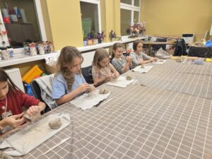 W piątek 21 listopada dzieci z parafii wzięły udział w anielskich warsztatach ceramicznych. Z mięciutkiej białej gliny zrobiły Anioła Gabriela. Praca w formie arteterapii była dobrą zabawą, ale aby przyniosła też owoce, najpierw dzieci posłuchały, co zrobił Archanioł Gabriel, a następnie zanurzyły palce w glinie. Zabawa ta, poza pięknymi pracami, które po wypaleniu dzieci zabiorą do swoich domów, rozwija umiejętności manualne oraz ćwiczy cierpliwość.