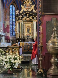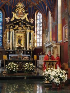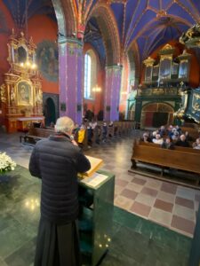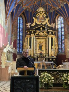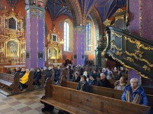 22 listopada 2025 przy pięknej słonecznej pogodzie wyruszyła z Domu Parafialnego ostatnia dziesiąta parafialna „Pielgrzymka Nadziei”. Pielgrzymi po krótkiej modlitwie pieszo udali się do Sanktuarium Matki Pięknej Miłości (Parafia Katedralna pw. św. Marcina i św. Mikołaja w Bydgoszczy) aby uzyskać dar odpustu zupełnego i wypraszać łaski dla siebie i swoich bliskich. W czasie drogi pielgrzymi odmówili Różaniec św. W katedrze pielgrzymów przywitał kustosz i proboszcz parafii katedralnej ks. infułat Stanisław Kotowski. Ks. Stanisław przypomniał obecnym, że umieszczony w ołtarzu głównym Obraz Matki Bożej Pięknej Miłości pochodzi z 1467 roku i został tak nazwany przez bł. Stefana kardynała Wyszyńskiego podczas koronacji obrazu w 1966 roku. Wcześniej obraz nazywano Matką Boską Bydgoską lub Matką Bożą z różą w ręku. Następnie został odmówiony Różaniec św. w intencjach, które przynieśli z sobą pielgrzymi. Mszę św. koncelebrowaną sprawowali ks. Krzysztof i o. Michał. W homilii o. Michał wspomniał o patronce dnia dzisiejszego św. Cecylii oraz o tym że dzień dzisiejszy i jutrzejszy Uroczystość Chrystusa Króla są ostatnimi w obecnym roku liturgicznym. Nawiązując do dzisiejszej Ewangelii w której saduceusze pytali Pana Jezusa o życie wieczne zapytał jakie my mamy wyobrażenie o niebie gdyż będziemy równi z aniołami i dziećmi Bożymi. Wspólne pielgrzymowanie niech wyda obfite owoce dla każdego pielgrzyma i naszej parafii, to słowa ks. Krzysztofa w czasie spotkania na plebanii parafii katedralnej. Błogosławieństwem ks. Krzysztofa zakończyło się ostatnie spotkanie i poczęstunek pielgrzymów. Bydgoska katedra była ostatnim kościołem pielgrzymowania w Roku Jubileuszowym. Składamy serdecznie podziękowania ks. Krzysztofowi za przewodnictwo we wszystkich pielgrzymkach do dziesięciu Kościołów Jubileuszowych Diecezji Bydgoskiej, sprawowaną Eucharystię i wygłaszane Słowo Boże. Również podziękowania należą się Joannie za logistyczne przygotowanie wszystkich pielgrzymek oraz tym wszystkim, którzy w jakikolwiek sposób przyczynili się do tego aby godnie przeżyć wspólny czas pielgrzymowania, nie tylko ten duchowy, ale również cielesny za niesienie krzyża, flagi parafii podczas pieszych pielgrzymek, posługę, czytania, śpiewy psalmów responsoryjnych w czasie sprawowanych Eucharystii, przygotowanie poczęstunków, które czekały na pielgrzymów we wszystkich nawiedzanych miejscach. Bóg zapłać. Pielgrzymi którzy posiadają wypełniony wszystkimi pieczątkami Paszport Pielgrzyma i jeszcze tego nie zgłosiły przedstawią paszport w biurze parafialnym. Na zakończenie Roku Świętego ordynariusz diecezji bydgoskiej ks. bp Krzysztof Włodarczyk uhonoruje osoby, które odwiedzą wszystkie z 10 Jubileuszowych kościołów „Certyfikatem Pielgrzyma”.