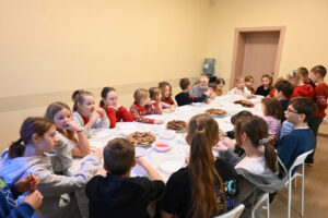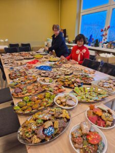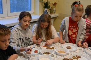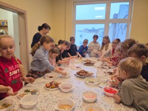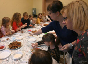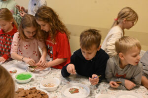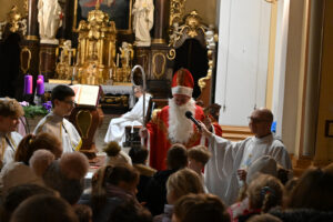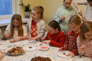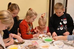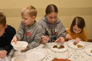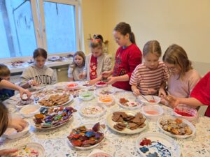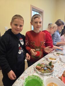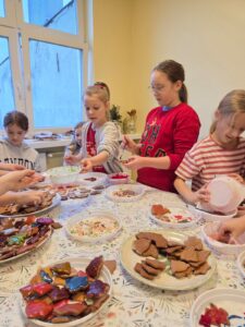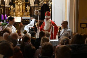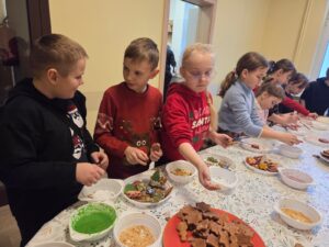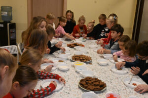 6 grudnia to kolejny dzień adwentu, czas przygotowania na przyjście Jezusa w Boże Narodzenie, a jednocześnie dzień radosnego oczekiwania, zwłaszcza przez najmłodszych, na Świętego Mikołaja. Podczas Mszy św. roratniej ten wyjątkowy gość pojawił się w naszym kościele i zaprosił dzieci do domu parafialnego. Każdego dnia po roratach parafialna grupa charytatywna częstuje ciepłym kakaem, kawką oraz bułeczką, a tego dnia dzieci dostały ponadto upominki od Mikołaja, a wszyscy zebrani pączki ufundowane przez cukiernię Sowa. Po śniadaniu 30 chętnych dzieci lukrowała pierniczki upieczone przez naszych parafian. Kolorowe, piękne smakołyki zostały zapakowane w paczuszki, które będzie można kupić już w najbliższą niedzielę na jarmarku przedświątecznym.