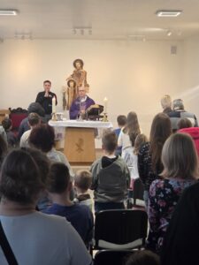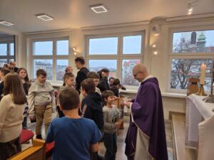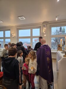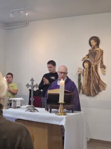 21 grudnia Ksiądz Łukasz odprawił w naszej parafii Mszę św. dla dzieci ze spektrum autyzmu oraz ich rodziców i rodzeństwa.  Podczas liturgii zostały uwzględnione szczególne potrzeby dzieci, zwłaszcza dotyczące ciszy i ograniczenia bodźców zewnętrznych oraz czas (30 minut). Po Mszy św. wszyscy obecni udali się do sali, gdzie był przygotowany poczęstunek, aby podzielić się opłatkiem i spędzić ze sobą przedświąteczne chwile.
