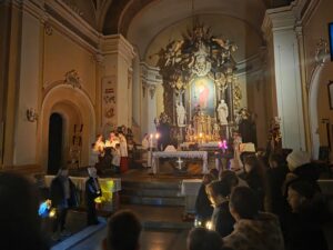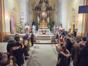 23 grudnia uczestniczyliśmy w ostatnich tegorocznych roratach. Przez cały ten czas czuwając w adwencie poznawaliśmy Papieża Leona XIV. Podczas rorat dzieciom towarzyszył lew Leo, który wędrował od mieszkania do mieszkania z Pismem Świętym. Była to zachęta do rodzinnego zgłębienia treści Pisma Świętego. Ponadto szczęśliwcy zabierali na jedną dobę figurkę Maryi. Ostatniego dnia obecne dzieci wzięły udział w konkursie na najpiękniejszy lampion. Lampion, który nie był przygotowany specjalnie na konkurs, tylko oświetlał drogę codziennie od pierwszego grudnia. Jury z przewodniczącym Księdzem Marcinem nagrodziło Klarę, Leę a pierwsza nagroda powędrowała do Sary. Dziękujemy wszystkim dzieciom oraz dorosłym za uczestnictwo w tegorocznych roratach, a Paniom które podjęły trud przygotowania śniadań - Bóg zapłać.