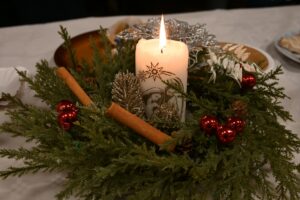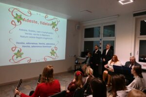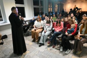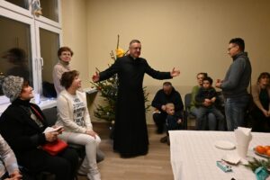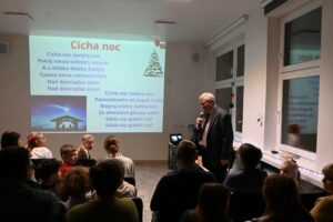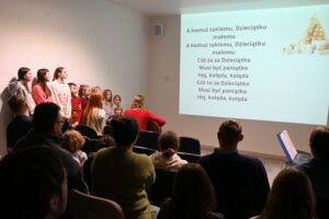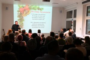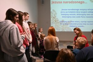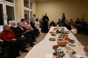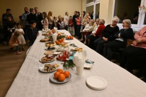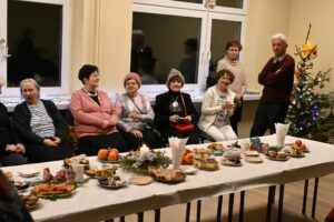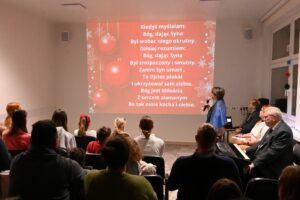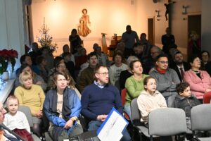 W niedzielę 28 grudnia, w Święto Świętej Rodziny parafianie i goście spotkali się w Domu Parafialnym na wspólnym, rodzinnym śpiewaniu kolęd. Liczne grono gości kolędowało z radością, od najmłodszych po seniorów. Przed śpiewem na wspólnym stole znalazły się świąteczne smakołyki przyniesione przez parafian. Śpiewanie prowadziła Zosia, a niezawodny Pan Karol akompaniował i prowadził wspólny śpiew. Parafialna schola zaśpiewała pastorałki przy wtórze pozostałych gości. Była również Bożonarodzeniowa bajka i wiersz autorstwa Zosi, a przedstawiciele wiernych Tradycji Łacińskiej zaśpiewali po łacinie kolędę „Adeste Fideles”. Słowa podziękowania należą się Przemkowi, który przygotował na rzutnik teksty kolęd i dzięki temu możliwe było wspólne śpiewanie wielu zwrotek. Po dwóch godzinach wspólnie spędzonego czasu z błogosławieństwem księdza Krzysztofa wszyscy zadowoleni wychodzili udając się do domów, a kto chciał mógł jeszcze rokoszować swoje podniebienie smakołykami. Na koniec spotkania w specjalnie przygotowane ramce można było zrobić sobie i swoim bliskim zdjęcie jako pamiątkę z tego niezapomnianego wieczoru.