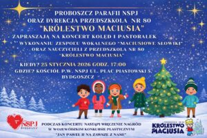 Serdecznie zapraszamy na koncert Kolęd i Pastorałek w wykonaniu dzieci z Przedszkola Nr 80 "Królestwo Maciusia".