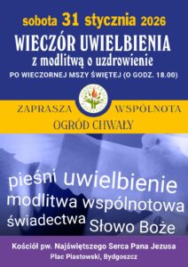 Wraz ze Wspólnotą "Ogród Chwały" spotykamy się W SOBOTĘ 31 stycznia w naszym kościele i będziemy z całego serca oddawać chwałę JEDYNEMU BOGU SERDECZNIE ZAPRASZAMY
