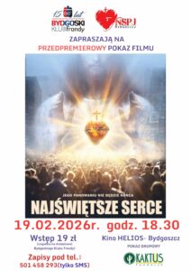 Bydgoski Klub Frondy  i Parafia NSPJ zapraszają na  projekcję  najnowszego  filmu pt: "NAJŚWIETSZE SERCE”. Film, który podbił kino we Francji, pokazuje historię  objawień Najświętszego Serca Pana Jezusa.
