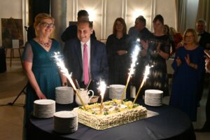 Para Prezydencka Marta i Karol Nawroccy ofiarowali inkografikę przedstawiającą Pałac Prezydencki w Warszawie. Wygrana Adam Zieliński.