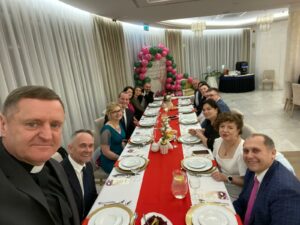 W sobotę 14 lutego, niespełna sto osób bawiło się w Restauracji Telimena na Walentynkowym BALU CHARYTATYWNYM „Serca w rytm Serca”, którego organizatorem była nasza parafia. Bal rozpoczął się modlitwą, po której goście zatańczyli poloneza i wznieśli toast. Przy wejściu na salę można było usiąść na specjalnie przygotowanej ławeczce zakochanych i zrobić sobie pamiątkowe zdjęcie. Kelnerzy dbali, aby na stołach nie brakło smacznych dań. DJ Tomasz Szewczyk, porywał do tańca niemalże 100 % obecnych. To wszystko stworzyło niezwykłą walentynkową atmosferę przepełnioną miłością i serdecznością.
