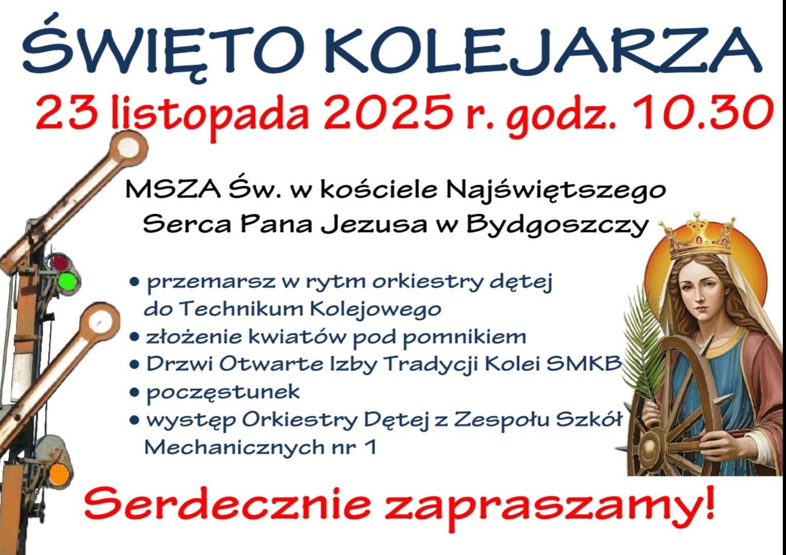 Serdecznie zapraszamy na obchody Święta Kolejarzy. Zaplanowanych jest wiele atrakcji – szczegóły na plakacie. Spotykamy się 23 listopada o godz. 10:30 w kościele Najświętszego Serca Pana Jezusa.