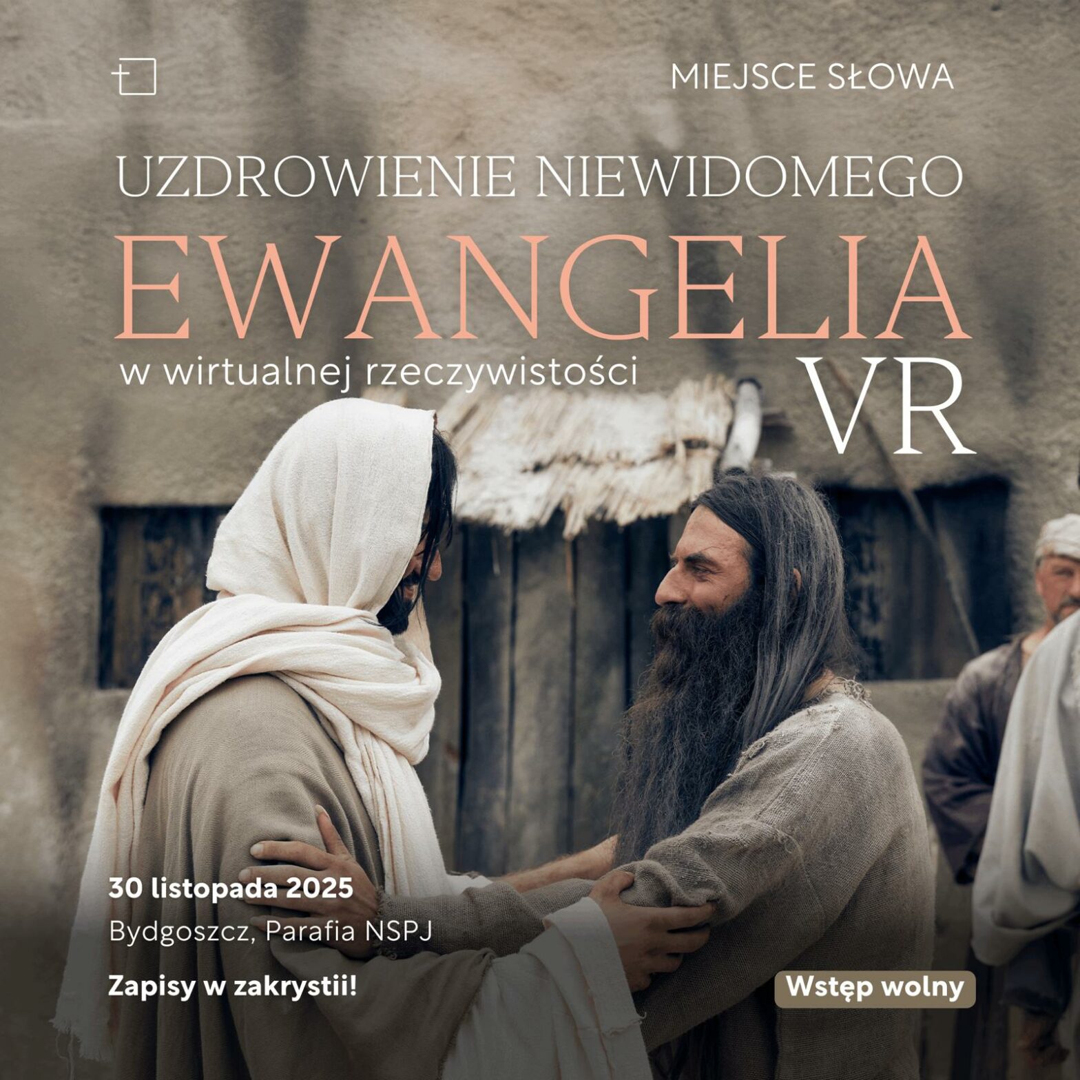 Zapraszamy na pokaz: Uzdrowienie niewidomego – MIEJSCE SŁOWA – Ewangelia w VR Pokazy w domu parafialnym 30 listopada w godzinach 10:00 – 14:00 co 20 minut Zapisy tylko w zakrystii, na konkretne godziny. Ilość miejsc ograniczona.