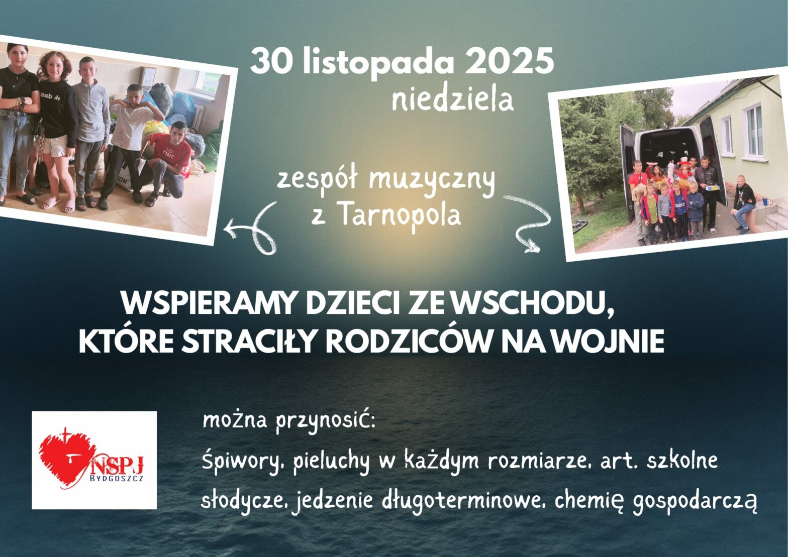 Niech będzie pochwalony Jezus Chrystus! W niedzielę 30 listopada będziemy gościć zespół z Ukrainy, z Tarnopola, który niesie pomoc dla sierocińca województwie Tarnopolskim i dzieciom ze wschodu, które straciły rodziców na wojnie. W sierocińcu przebywają dzieci w wieku od jednego miesiąca do 16 lat i jest ich ok. 120. Zespół poprowadzi śpiew oraz przybędzie z …
