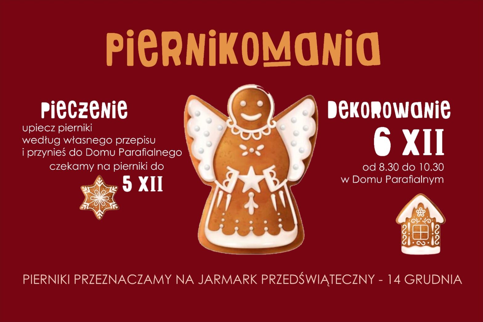 *** PIERNIKOMANIA *** Zapraszamy do włączenia się w piernikomanię – zarówno w pieczeniu pierników jak i w dniu ich lukrowania przez najmłodszych. Nie pozwólmy, aby w tym roku zabrakło pierników dla tych, co wstają nieco później. Pierniki można przynosić do biura parafialnego do piątku 5 grudnia włącznie. Chętnych do pomocy 6 grudnia zapraszamy do kontaktu. …