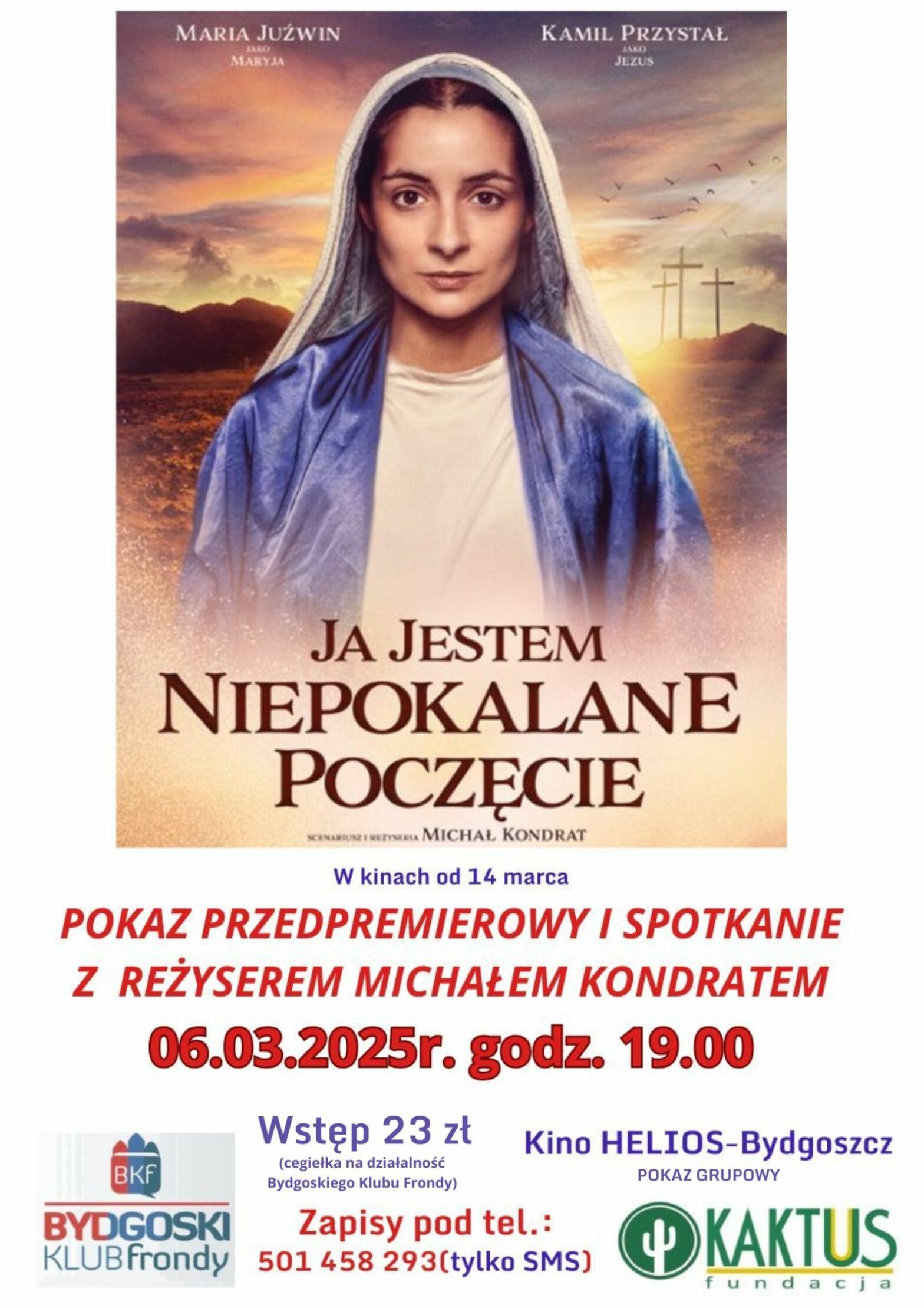Bydgoski Klub Frondy zaprasza na film pt.: „JA JESTEM NIEPOKALANE POCZĘCIE” w reżyserii Michała Kondrata. Premiera filmu odbędzie się w kinach 14 marca ale my zapraszamy na specjalny przedpremierowy pokaz i spotkanie z reżyserem w dniu 6 marca(czwartek) o godz. 19.00 w Kinie Helios. Bilet w cenie 23 zł. Obowiązują wcześniejsze zapisy pod telefonem 501 …